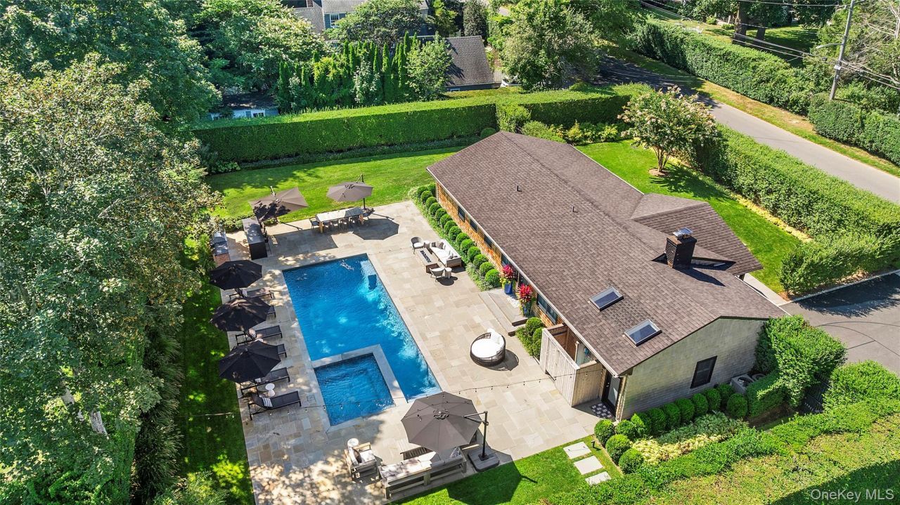 Tucked away on one of the most desirable and serene streets in Southampton Village, 30 Breese Lane is the ultimate Hamptons retreat-effortlessly blending timeless charm with today's luxurious lifestyle. Recently renovated in 2022 to perfection and spanning approximately 3,000 square feet, this five-bedroom, four-bath home sits on a manicured .35-acre parcel that feels like your own private resort. From the moment you arrive, you're greeted by lush landscaping and a covered front porch that hints at the relaxed elegance waiting inside. The main level features three bedrooms, two full baths, and a light-filled open-concept living and dining area centered around a modern gas fireplace. The sleek white kitchen is outfitted with top-of-the-line appliances, high-gloss cabinetry, and a picture window perfect for morning coffee views. On the lower level, you'll find two additional bedrooms, two full baths, a stylish lounge/media area with a built-in bar, and a second laundry room-ideal for guests or extended stays. Step outside into a backyard paradise where a heated gunite pool, oversized hot tub, and outdoor shower invite endless summer enjoyment. Host unforgettable gatherings on the expansive patio with lounge seating, a built-in outdoor kitchen, gas fire pit, and dedicated dining area shaded by market umbrellas. Whether it's entertaining under the stars or quiet mornings by the pool, this backyard was designed to impress. Additional amenities include an attached 1-car garage, two laundry areas, and an enviable location just moments to Southampton Village shops, dining, and world-class ocean beaches. Whether you're looking for a summer haven or year-round escape, 30 Breese Lane offers refined village living with every luxury detail already in place.